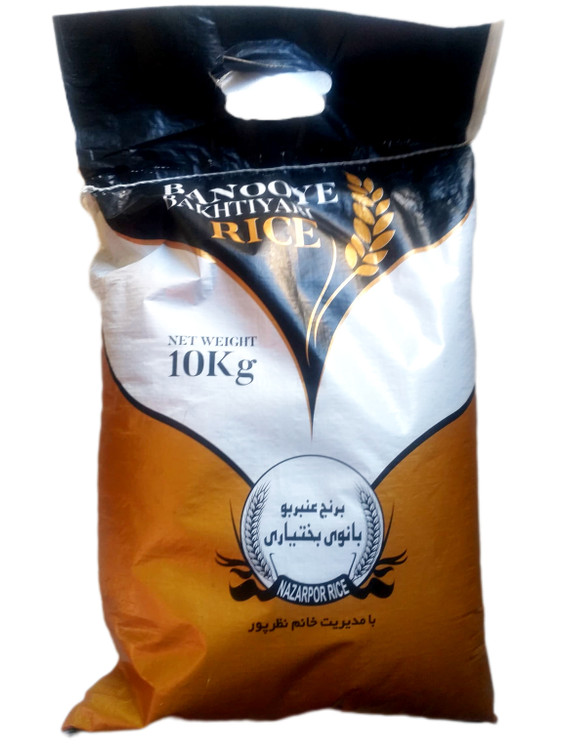 برنج ایرانی عنبربو بانوی بختیاری درجه یک در بسته بندی ۱۰ کیلوگرمی